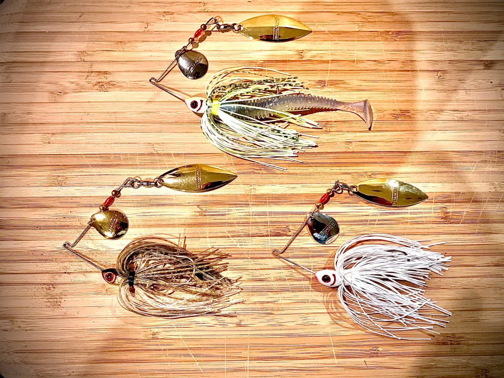 - Booyah Blade Double Willow Spinnerbait (Chartreuse w. gold blades, Gold Shiner w. Gold Blades, Silver Shad w. silver blades)