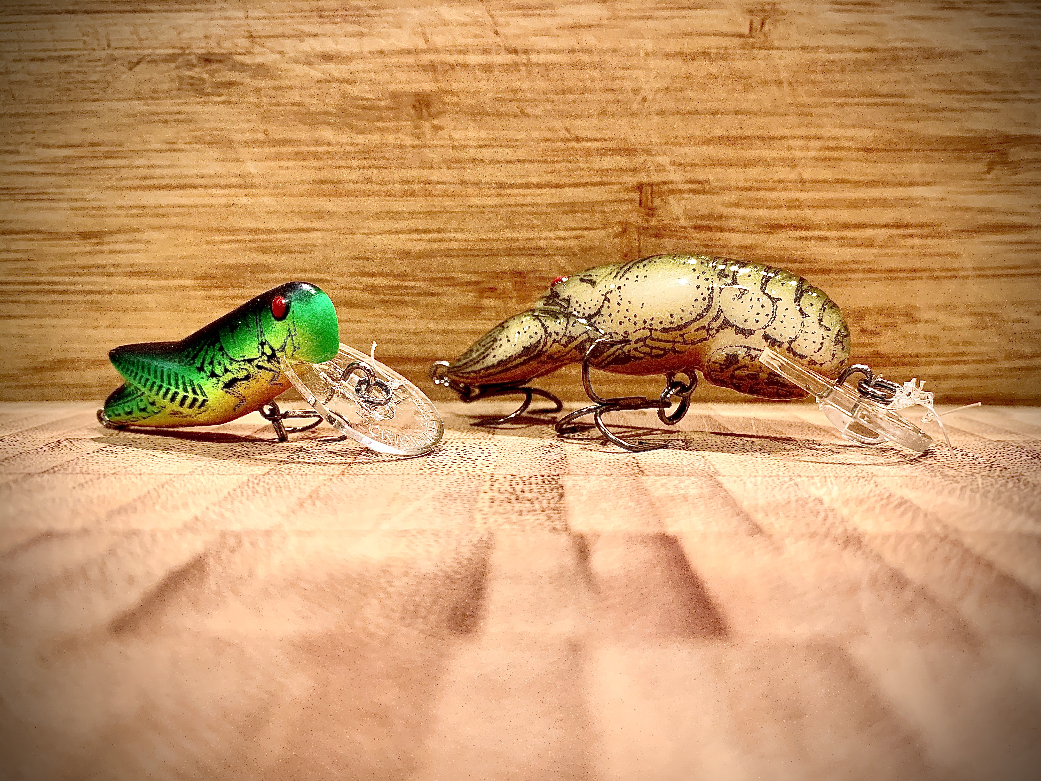 Hard baits are simple. Use a crawfish or cricket imitation. My favorite crawfish crankbait that never fails is the Rebel Wee Craw. It deflects cover and fish of all sizes can eat it. For a cricket imitation use the Rebel Crickhopper. It is good when the crickets come out in late spring after their nymph stage.
