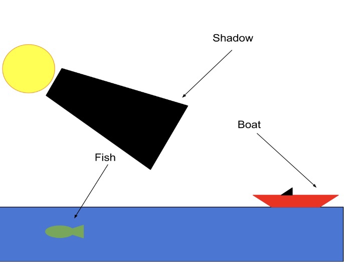 Boat position is key for not scaring fish. Position your boat where your shadow is facing away from the fish. If your shadow falls over the fish it gives away your presence and spooks the fish. Also position your boat farther away from the fish and cast over the fish. Do not drop a bait right in front of them, but instead cast it twenty to thirty feet behind them and work it to them.